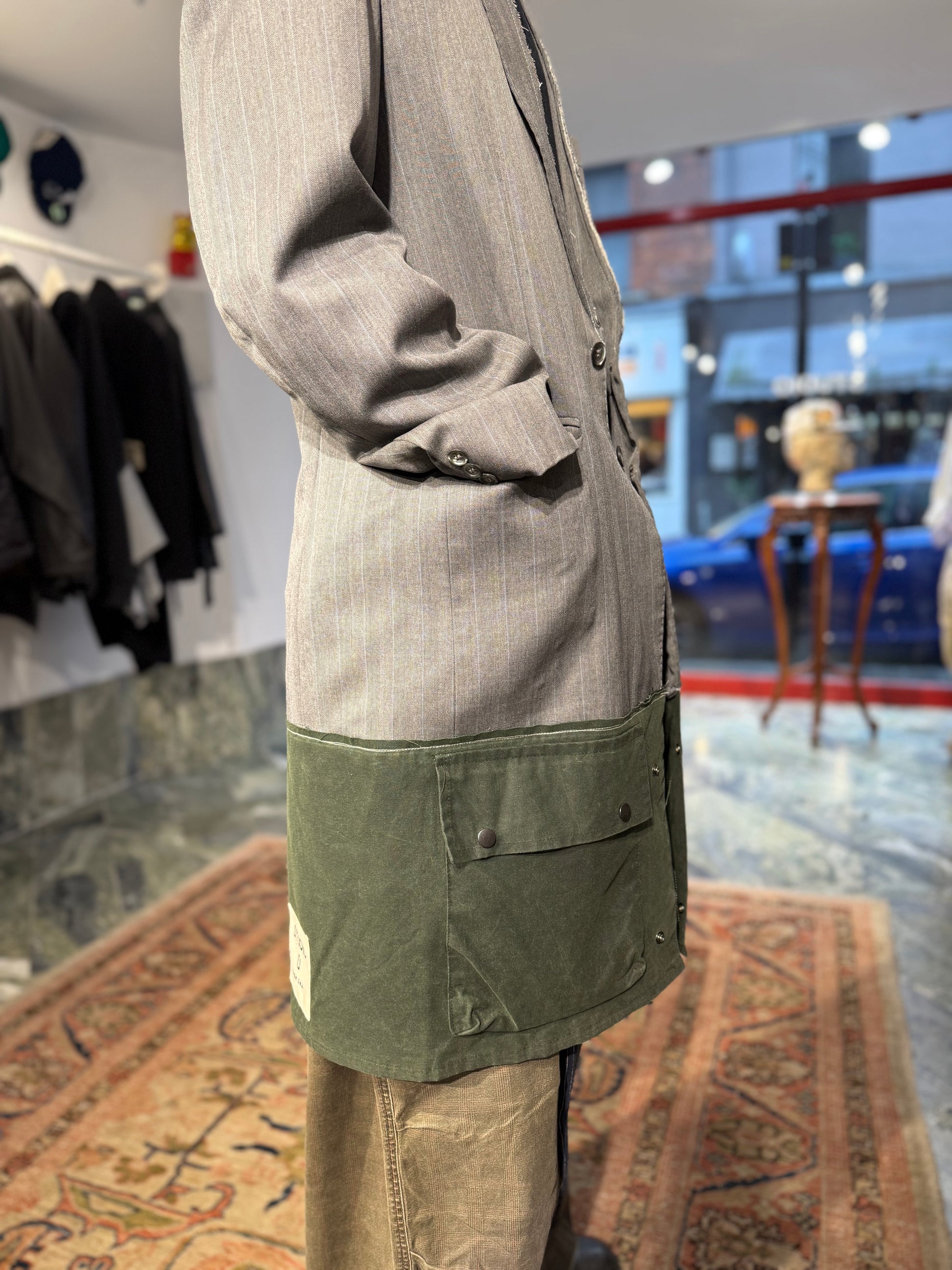 Crafted from two deadstock designer blazers, this Blazer Jacket has been meticulously hand-cut and sewn to create a bold, oversized silhouette.